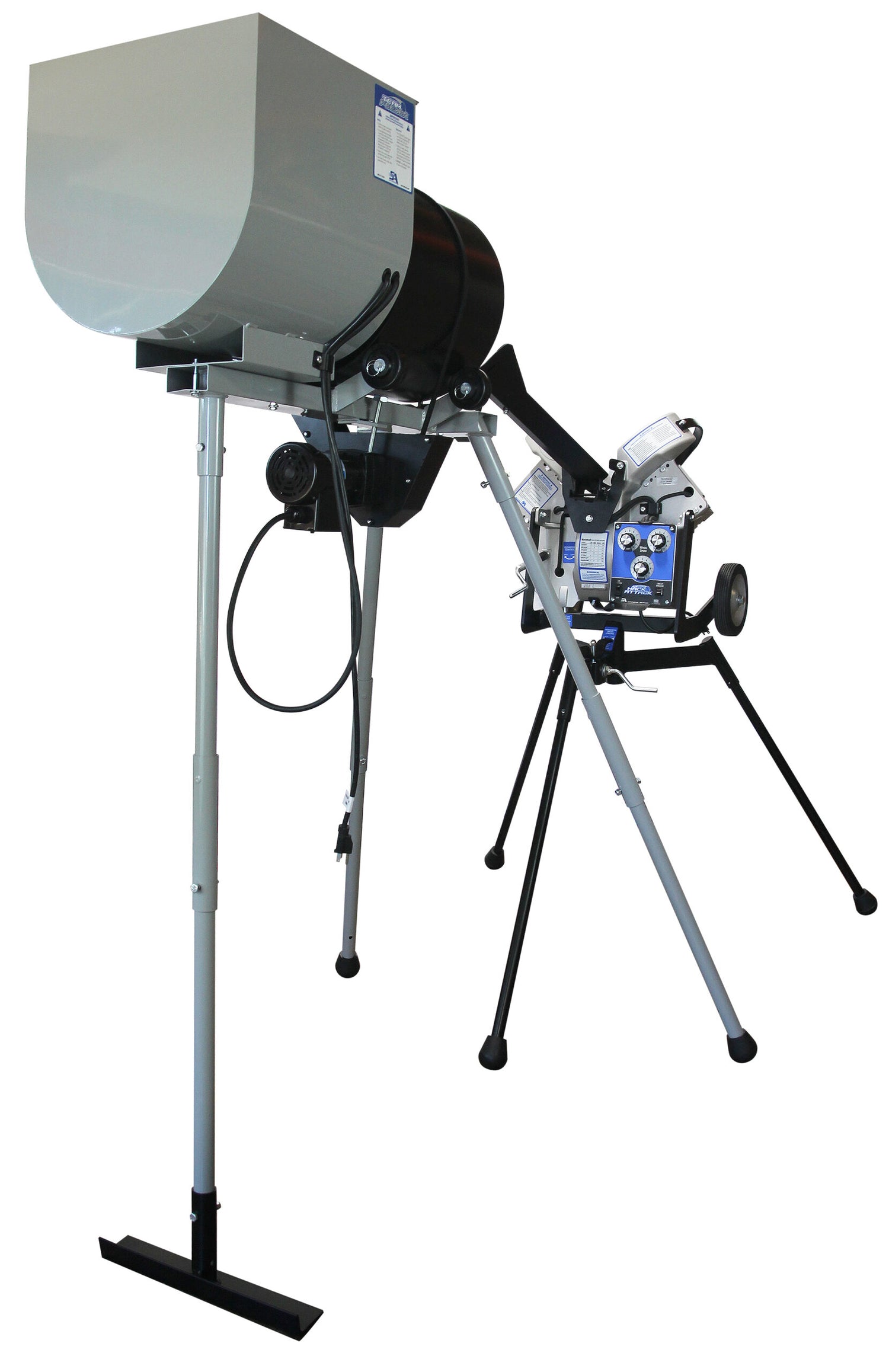 - Anti-jam agitation supplies a constant flow of balls (baseballs and softballs).