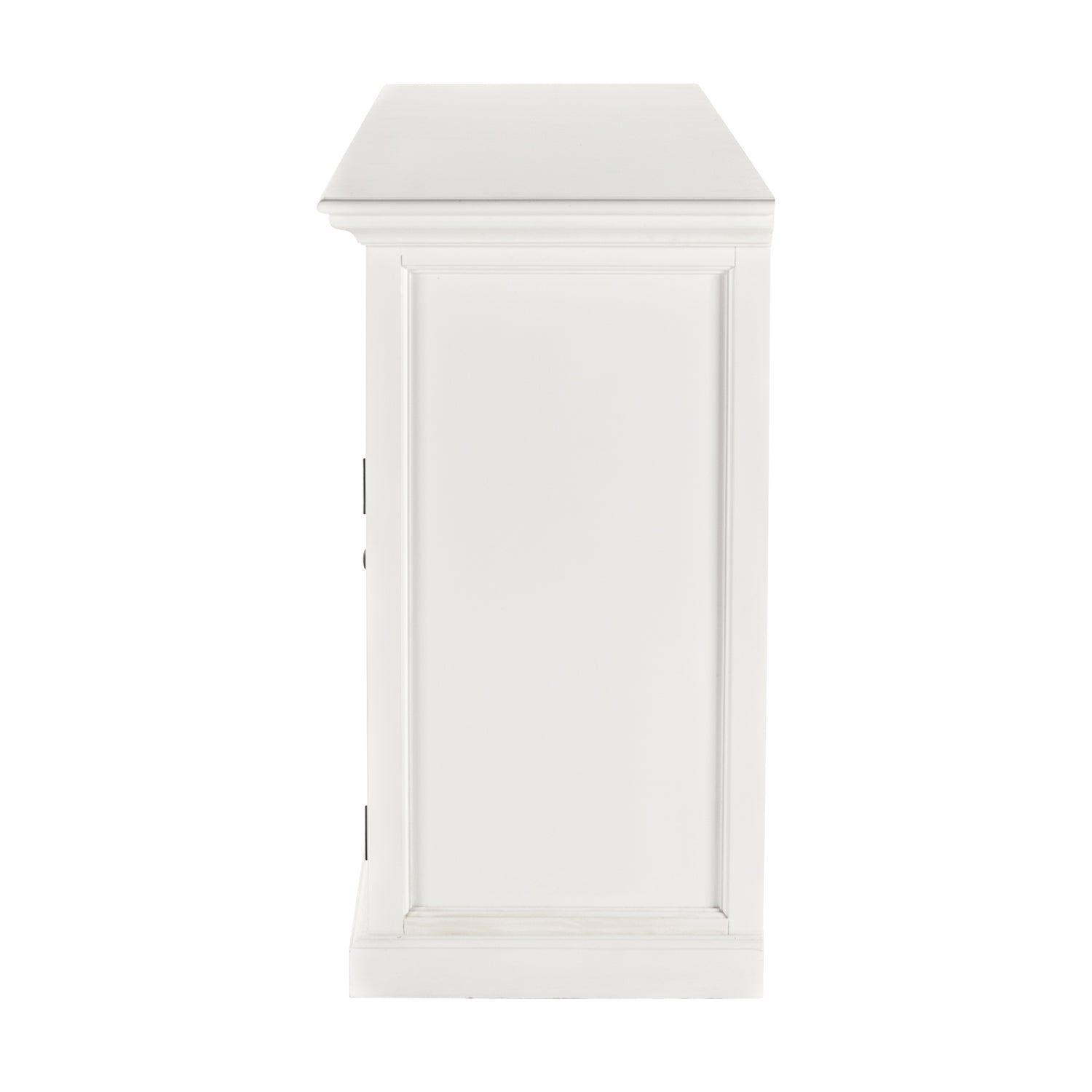 Bring refined charm and functional storage into your dining or living space with the NovaSolo Halifax Buffet. Crafted from kiln-dried solid mahogany and finished in a luminous Classic White, this buffet blends French countryside character with coastal elegance. Antique brass hardware, detailed profiling, and hand-finished craftsmanship give each piece a timeless appeal.