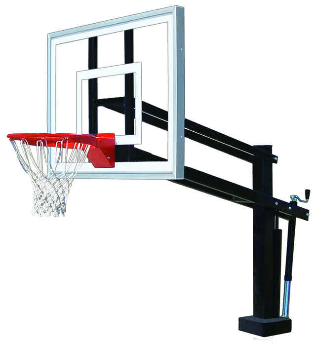 The HydroShot Swimming Pool Hoop comes complete with your choice of three clear, professional looking acrylic backboards and breakaway rim. To adjust the unit, simply turn the crank handle positioned for easy access from the pool deck. The unit is infinitely adjustable from regulation 10' down to 6'6". An easy-to-read height indicator is provided as well.