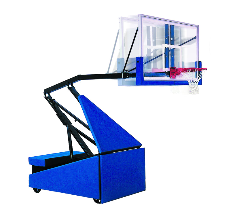The distance from the backboard to the base of the unit is variable from 54" to 66" allowing the Storm to fit in your facility. Heavy foam padding, available in an array of colors, protects players on the front, sides, and back of the base. The unit is extremely stable as well as durable, and will not tip over when players hang on the rim.