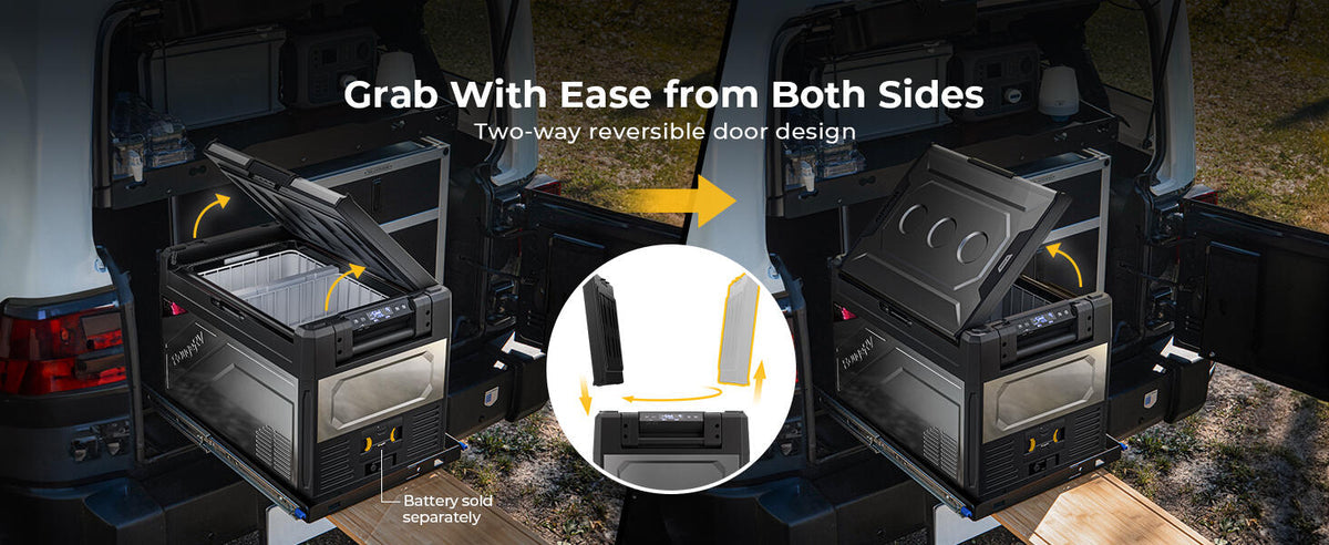 - Detachable battery for the Dual Zone Portable Fridge is sold separately.