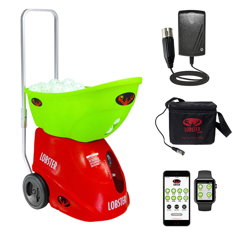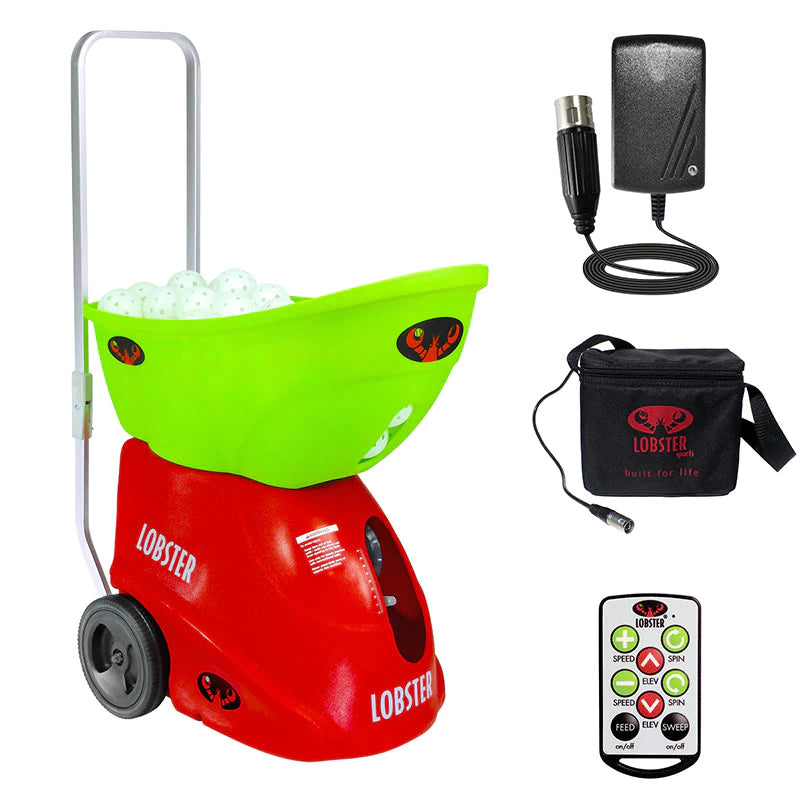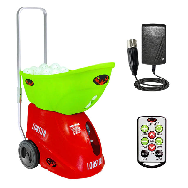 Based on the same sleek design of our tennis ball machines, the pickle two features an inverting hopper, folding handle, and large 8-inch wheels, making it easy to get the 42 pound machine in and out of your car, over curbs, and across any surface to the court.