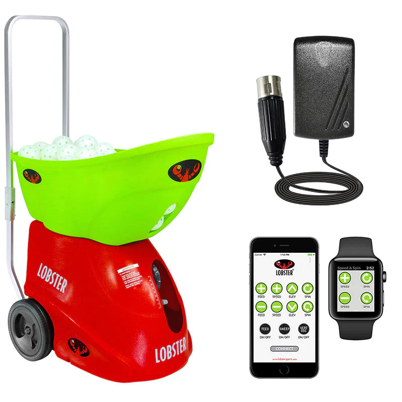 Improving on our original pickleball machine, the pickle two by Lobster, offers more advanced features, upping training intricacy while making the machine easier to use. We’ve expanded the random oscillation found on the pickle to include 2-line oscillation. With the 2-line feature, the ball is delivered to two alternating pre-set spots on the court, throwing one ball to the forehand side followed by one ball to the backhand side. This is great for singles or doubles training. We’ve also upgraded the elevation from manual to electronic for simpler and speedier angle adjustments. A larger battery than the standard model lets you stay on the court longer, running 6 to 8 hours per charge.